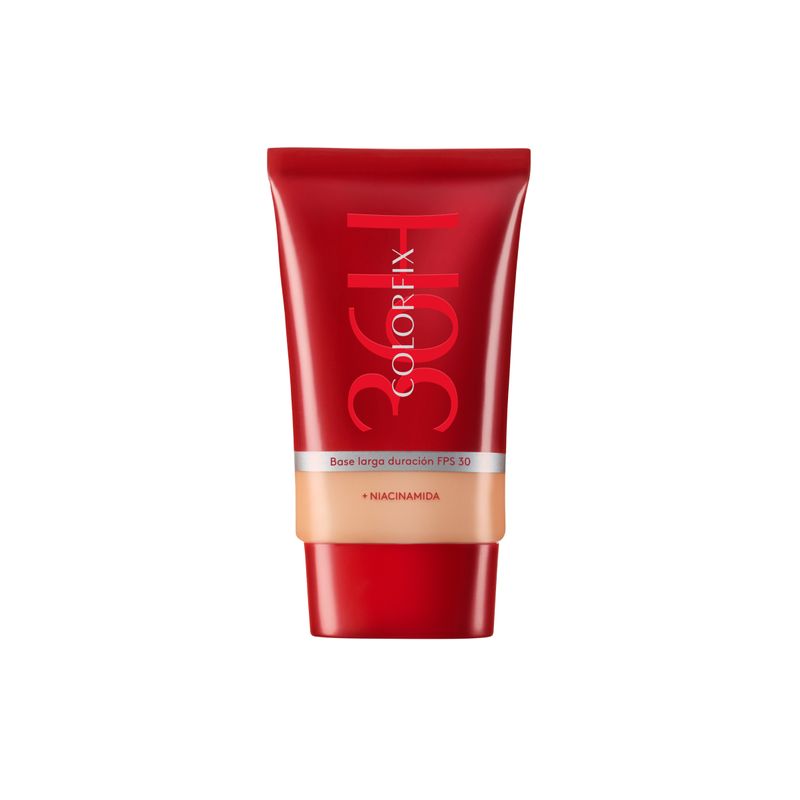 Base con 36H de alta cobertura no transfer con FPS 30. Capacidad: 29 ml. Tamaño: 11.6x4.70x2.00 cm.